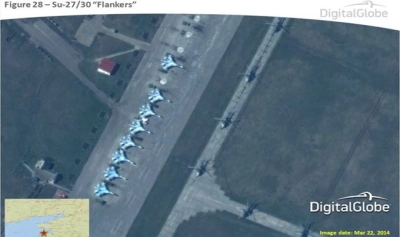 În imaginile luate din sateliți civili, făcute publice de Departamentul de Stat și de reprezentanța SUA pe lângă NATO pe contul său de Twitter, se pot vedea peste 20 de elicoptere ruse staționate, pe 9 mai, la Belgorod, în apropiere de frontieră.