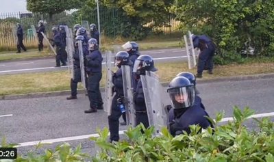 Protestatarii s-au adunat în fața Hotelului Citywest, folosit drept centru de azil, potrivit Sky News. La fel ca în seara precedentă, demonstranții dotați cu steaguri irlandeze au protestat față de acceptarea de migranți.
