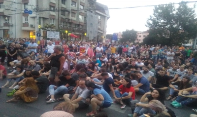 Peste 2.000 de persoane protestează duminică seara la Cluj-Napoca, scandând "Jos comunismul" și "Afară cu PSD din țară" și blocând traficul în fața Prefecturii Cluj, unde s-au așezat pe carosabil.