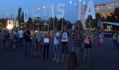 UPDATE La ora 21:00, protestatarii şi-au aprins telefoanele şi au cântat imnul naţional.