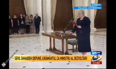 Sevil Shhaideh, noul ministru al Dezvoltării, a depus, miercuri, juramantul de investitura la Palatul Cotroceni.