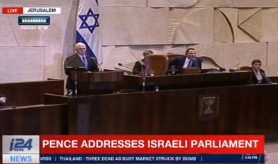 Luni, 22 ianuarie, în timpul discursului susținut de vicepreședintele SUA, Mike Pence, în Knesset, parlamentarii arabi au protestat față de recunoașterea Ierusalimului drept capitala statului Israel. Aceștia au afișat pancarte cu mesajul „Ierusalimul este capitala Palestinei”. În doar câteva secunde, parlamentarii-protestatari au fost escortați afară din sala de ședință.