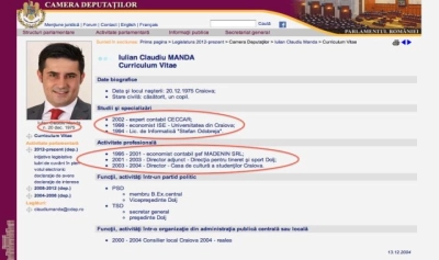 1. Astfel, dacă joi apărea pe site-ul Camerei Deputaților un CV în care Manda se lăuda că a fost economist contabil șef la o anumită firmă, MADENIN SRL, vineri, deputatul a scris că a fost, de fapt, Contabil, Director economic la o altă firmă, și anume SC MADEXIM SRL