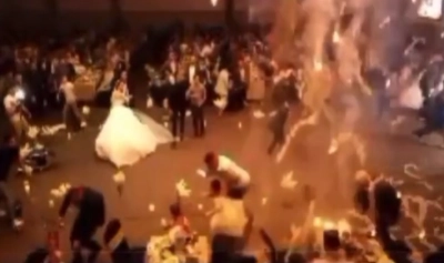 Video shows the moment fire broke out in a weeding in Hamdaniyah