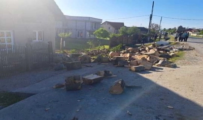”Poliţiştii au stabilit că un bărbat de 29 de ani, din comuna Bâlteni, a condus pe DN 66 o autoutilitară încărcată cu material lemnos, iar în dreptul unui imobil din comuna Plopşoru, a părăsit partea carosabilă, intrând în coliziune cu un gard. În urma coliziunii, materialul lemnos s-a răsturnat, lovind un bărbat de 48 de ani, din comuna Plopşoru”, a transmis IPJ Gorj.