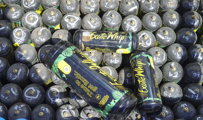 Până de curând, utilizatorii luau canistre metalice simple, de unică folosință, care cântăreau aproximativ 8 g și inhalau gazul cu ajutorul unui balon. Dar când utilizarea a crescut în timpul pandemiei, producătorii de protoxid de azot au început să vândă online canistre mult mai mari - de până la 2 kg - și, în cele din urmă, în magazinele care vând vape electronice și alte accesorii pentru fumat.