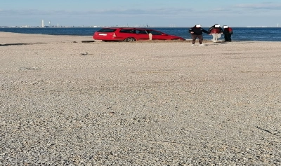 „Deși cei mai mulți au preferat să se plimbe pe plajă, s-a găsit și un temerar care a vrut să simtă nisipul sub roțile mașinii. Nu numai că l-a simțit, dar a și rămas blocat cu autoturismul pe plajă”, se arată înr-un comunicat al primăriei.