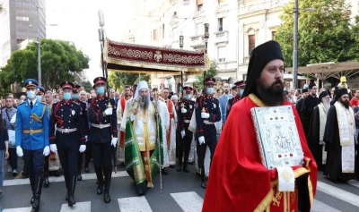 La procesiunea condusă joi pe străzile Belgradului de Patriarhul Porfirie au participat zeci de mii de persoane, între care câteva sute de clerici, reprezentanți ai Poliției și Armatei Sârbe, autorități de stat, dar și personal medical aflat în prima linie a luptei cu Covid-19.
