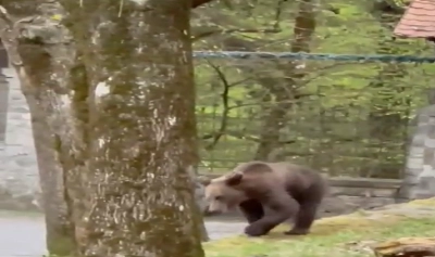 Un urs a fost filmat în timp ce smulge un coş de gunoi de pe un stâlp, în staţiunea Sinaia. Animalul nu se lasă intimidat nici de câinii care latră, nici de şoferii care claxonează şi timp de câteva minute continuă să caute hrană într-o zonă amplasată la câţiva metri de o staţie de autobuz.