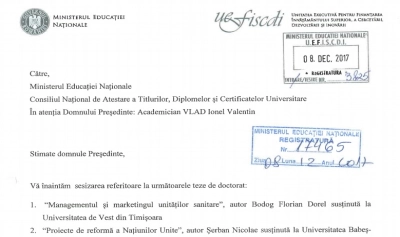 Cristian Dogaru, cercetător român la Universitatea britanică Suffolk, a trimis CNATDCU o sesizare în privința lucrărilor de doctorat realizate de senatorul PSD Șerban Nicolae și de ministrul Sănătății, Florian Bodog. Sesizarea a fost înregistrată oficial la CNATDCU.