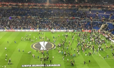 Olympique Lyon a fost sancţionată pentru incidentele produse de suporteri, pentru fumigene, blocarea scărilor de acces în şi din stadion, deficienţe organizatorice şi invadarea terenului de către suporteri după ce echipa a marcat golul doi.