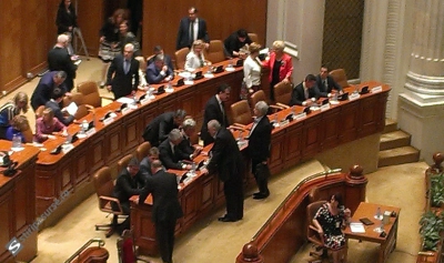 Prezent alaturi de membrii Guvernului la discursul presedintelui Klaus Iohannis privind Strategia de Aparare din plenul Camerei Deputatilor si Senatului, Gabriel Oprea a stat pe scaunul destinat de obicei premierului Victor Ponta.