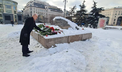 Ambasadorul român la Moscova, Cristian Istrati, a depus flori la Piatra Solovețki, un altar improvizat dedicat lui Alexei Navalnîi.