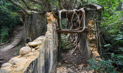 Rădăcini groase au acoperit o casă dărăpănată, iar trunchiurile șerpuite ale unui arbore banyan încadrează locul unde se afla cândva ușa de la intrare. Zidurile au fost găurite de zeci de ani de taifunuri, musoni și umezeală de vară, iar acum nu mai sunt decât pietre dezlipite, acoperite de mușchi și praf de mortar. Vița de vie se strecoară prin crăpăturile din fundație, iar frunzele căzute murdăresc podelele putrezite.