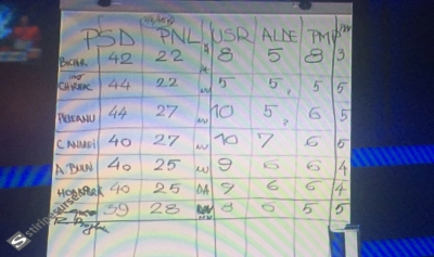 PSD va obține cel puțin 39 40%, procentul maxim fiind de 44%. Cei 7 au pariat că PNL va obține cel puțin 22%, procentul maxim fiind de 28%. USR s-a încadrat între 5 și 10%, ALDE între 5 și 7%, PMP între 5 și 7%, iar PRU va obține, conform pronosticurilor între 3 și 5%.