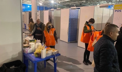 Centrul Moldexpo este plin cu refugiați, iar voluntarii sunt la fața locului atât ziua, cât și noaptea.