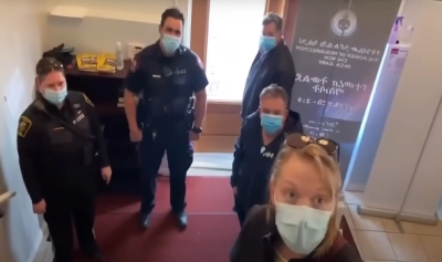 Videoclipul arată mai mulți ofițeri de poliție care asistă un oficial de sănătate publică în interiorul bisericii, în timp ce Pawlowski țipă la ei să iasă din biserica sa. „Plecați imediat de pe această proprietate! Nu vreau să aud nimic!” strigă Pawlowski.