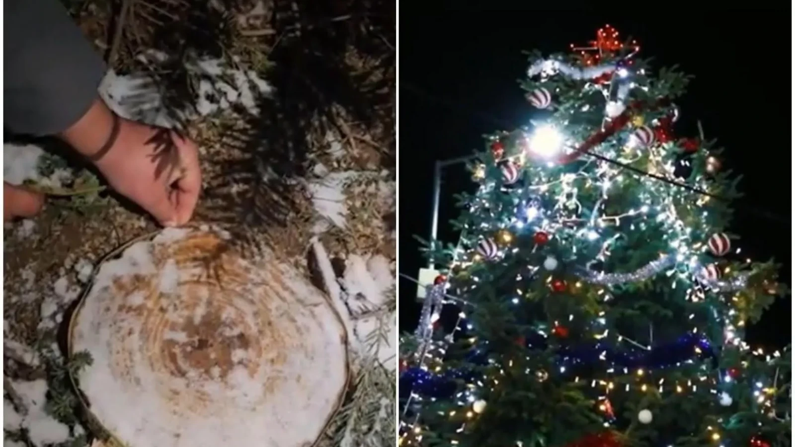 „Am văzut că e tăiat exact de jos, iar când am ajuns în centru ni s-a părut identic. Circumferința se potrivea, îl recunoșteam cumva”, a declarat Mihai Dumitrașcu pentru Adevărul, precizând că anul trecut primăria folosise, de asemenea, un brad tăiat dintr-o proprietate publică.