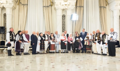 Klaus Iohannis a conferit, luni, Medalia "Meritul Cultural" unui număr de 26 de artişti populari, iar la finalul ceremoniei s-a pozat cu aceştia purtând un clop, un cap de cerb de colindat şi alte articole populare. Imaginile cu președintele în această ipostază nu au fost publicate și pe site-ul Administrației Prezidențiale.