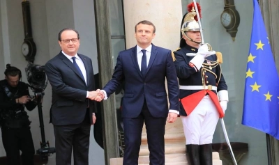 François Hollande i-a predat duminică ştafeta lui Emmanuel Macron în funcţia de preşedinte al Franţei în cadrul unei ceremonii oficiale şi a părăsit apoi Palatul Elysee, în aplauzele invitaţilor şi ale mulţimii adunate în faţa reşedinţei prezidenţiale, relatează AFP, conform agerpres.ro.