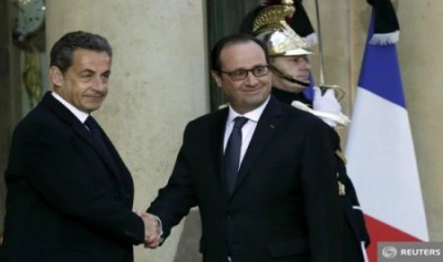 Cei doi politicieni s-au salutat călduros în fața ziariștilor prezenți la intrarea în Palatul Elysee. Anterior, într-o declarație dată de la sediul partidului său, Uniunea pentru o Mișcare Populară, fostul președinte a cerut 'tuturor francezilor să nu cedeze tentației de a amesteca lucrurile și să facă front comun în fața terorismului, barbariei și asasinilor'. El a evocat de asemenea 'imperativul unității naționale' de la care nimeni din clasa politică 'nu poate și nu trebuie să se sustragă'.