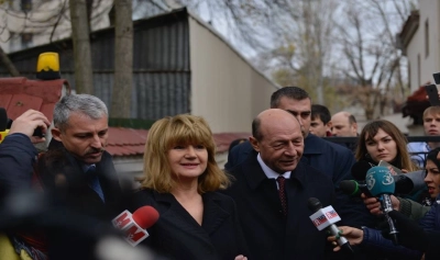 Băsescu a venit la Ambasada Republicii Moldova din Bucureşti împreună cu soţia sa, Maria, care şi-a exprimat, la rândul său, opţiunea electorală.