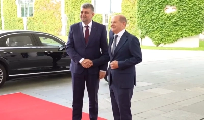 Marcel Ciolacu a fost primit, marți, Olaf Scholz, cancelarul german. Premierul român se află într-o vizită în Germania.