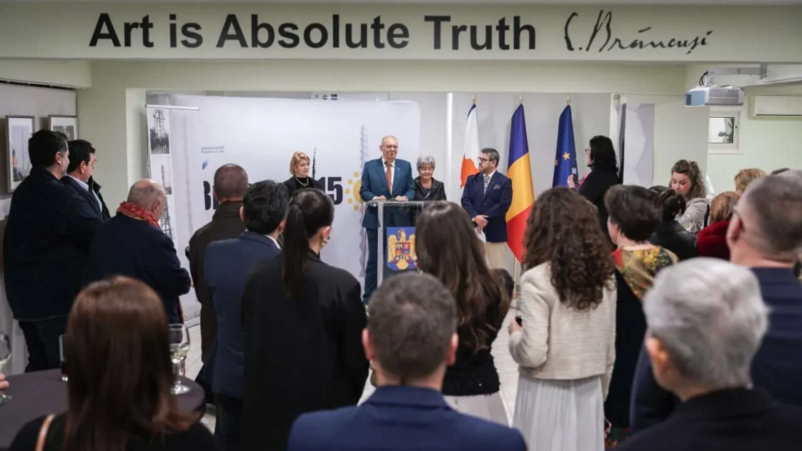 ”În faţa publicului prezent – reprezentanţi ai misiunilor diplomatice acreditaţi la Nicosia, membri ai frumoasei comunităţi româneşti, reprezentanţi ai mediului academic şi ai mediului de afaceri – viceprimarul municipiului Târgu Jiu, Adrian Tudor, a adresat un mesaj de suflet, evocând responsabilitatea de a proteja şi promova moştenirea brâncuşiană”, precizează reprezentanţa diplomatică.
