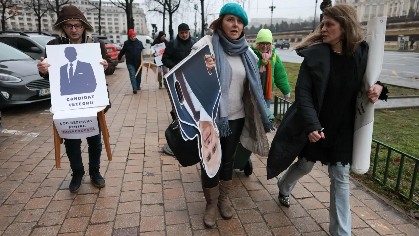 Manifestanții au afișat bannere de mari dimensiuni cu mesaje precum „Așa NU se mai poate! Vrem integritate, vrem nume nepătate!” și au fost amplasate scaune goale etichetate cu mesajul „Loc rezervat pentru competiție” și „Candidatul integru”.