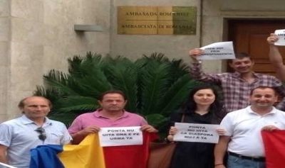 Românii din Diaspora reacţionează la scandalul urmăririi penale a premierului Victor Ponta de către DNA. Sâmbătă, 6 iunie, a avut loc, în faţa Ambasadei României de la Roma, o acţiune spontană de protest a unor membri şi simpatizanţi liberali.