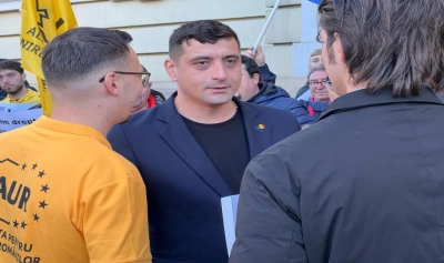 FOTO - Protest de AUR în fața Primăriei lui Emil Boc: George Simion și-a strâns simpatizanții de la Cluj