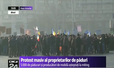 Principalele asociaţii profesionale din domeniul forestier au anunţat că vor organiza o acţiune de protest în Capitală, în faţa clădirii Guvernului. La acţiune şi-au anunţat participarea peste 5.000 de angajaţi din domeniul forestier. La ora 10.30, în Piaţa Victoriei erau deja aproximativ 3000 de oameni.