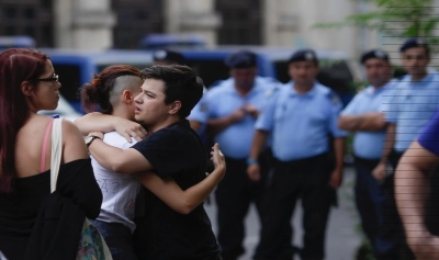 Aproape 50 de membri ai comunităţii LGBT şi de susţinători ai acestora au participat miercuri seara la un protest neautorizat în zona Universităţii, manifestându-şi dezaprobarea faţă de decizia CC prin care s-a dat aviz pozitiv pentru iniţiativa cetăţenească de revizuire a Constituţiei. Protestatarii au scandat "luptăm, rezistăm, iubim" şi au afişat pancarte imprimate cu inimoare şi cu mesajul "love is gay".