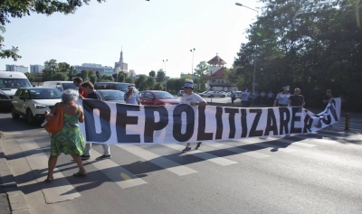 Aproximativ zece persoane traversează, la ora transmiterii știrii, trecerea de pietoni din apropierea monumentului Fântâna Mioriței din Capitală, încercând să blocheze circulația, în semn de protest față de ultimele modificări ale codurilor penale.