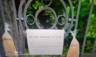 Sindicaliștii din penitenciare au legat franzele de gardul sediului PNL din Aleea Modrogan și mesajul ”Ne ”luaț” pâinea de ”l-a” gură!”.