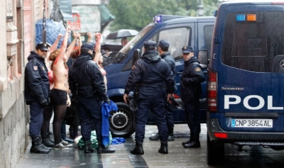 Câteva activiste Femen, care susţin avortul, s-au luat la bătaie cu poliţiştii şi jandarmii spanioli în Madrid, în timpul unui boicot. Tinerele erau topless şi aveau diferite mesaje scrise pe abdomen şi mâini. După minute bune de tensiune, lucrurile s-au calmat, anunţă spynews.ro.