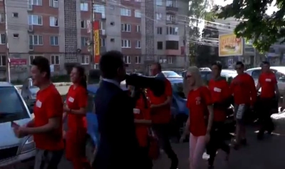 Neamtu a continuat sa se plimbe si sa critice PSD. “Jos Iliescu, jos cei care au ucis tinerii la Revolutie, rusine PSD-ului!”.