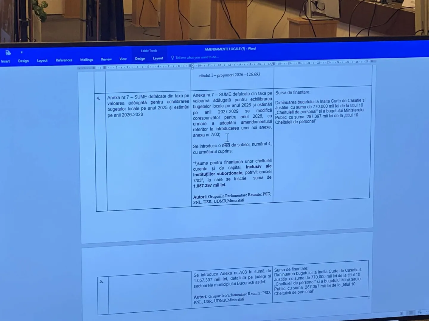 „Sume defalcate din taxa pe valoarea adăugată pentru echilibrarea bugetelor locale pe anul 2026 și estimări pe anii 2027-2029 se modifică corespunzător pentru anul 2026, ca urmare a adoptării amendamentului referitor la introducerea unei noi anexe, anexa nr. 7/03;