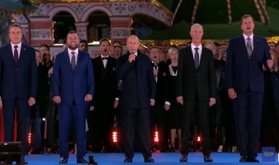 Preşedintele rus Vladimir Putin s-a adresat mulţumii strânse vineri în Piaţa Roşie din Moscova pentru un concert prilejuit de anexarea de către Rusia a regiunilor ucrainene Herson, Zaporojie, Lugansk şi Doneţk. Pe scenă, după discurs, Putin a cântat imnul Rusiei alături de artişti şi de liderii pro-ruşi ai celor patru regiuni. Concertul a fost transmis în direct de televiziunea de stat rusă, potrivit Agerpres.