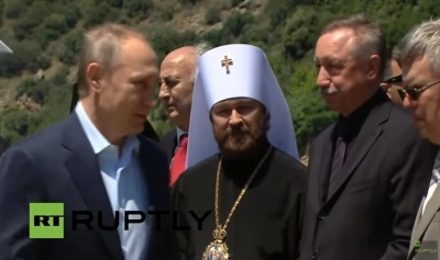 Potrivit DPA, care citează televiziunea de stat ERT, Putin a participat la o scurtă slujbă religioasă la Karyes, capitala administrativă a Muntelui Athos, unde se află şi biserica principală. Preşedintele rus a fost însoţit de omologul său elen, Prokopis Pavlopoulos, şi de şeful Bisericii Ortodoxe Ruse, patriarhul Kirill.