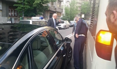 ”Arafat e nervos ca un sofer de RATB i-a taiat calea. A chemat Politia si soferul ia amenda."Nu va da nimeni dreptul sa depasiti aici". Dupa mintea de sofer cu permis ce nu conduce ii dadea semnul de circulatie dreptul. Saracul sofer si-a aprins o tigara dupa ce a incasat amenda.”, relatează Andreea Ofițeru, cea care a surprins și poza, pe Facebook.