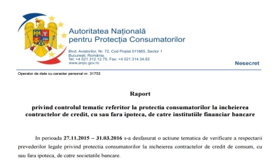 Autoritatea Naţională pentru Protecţia Consumatorilor (ANPC) a făcut public raportul controalelor realizate în sistemul bancar și cel al instituțiilor financiare nebancare (IFN), în anul 2016 și 2017.