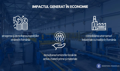 „Venim cu această propunere pentru că vrem să atragem în România investiții de mare anvergură, pe care să le orientăm către regiunile mai puțin dezvoltate ale țării, pentru un suflu nou de dezvoltare și prosperitate în aceste zone. Punem accent pe efectul multiplicator al investițiilor: nu numai că vor stimula competitivitatea unor ramuri industriale cu tradiție în România, dar vor crea și oportunități de angajare pentru mii de cetățeni din întreaga țară. Vedem că ajutoarele de stat acordate de MF în perioada 2007–2023 s-au dovedit un instrument real de stimulare a atragerii de investiţii şi creării de noi locuri de muncă: până acum s-au emis 304 acorduri pentru finanțare în vederea susținerii de investiții în valoare de 6,7 miliarde euro, care generează peste 61.000 locuri de muncă. Valoarea contribuţiilor directe generate de proiectele de investiţii este undeva la 4 miliarde euro”, a transmis ministrul Marcel Boloș.