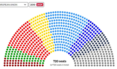 Iar eurodeputații deafiliați ar avea 100 de mandate (13,9%), cu 38 în plus față de 2019.