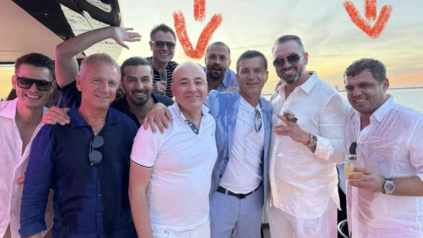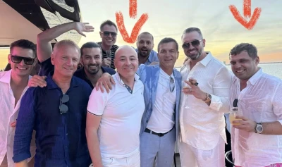 ”Chel, în stânga, e “Păduchele” aka Muraru, ambasadorul României în SUA. Păros, în dreapta, e soțul doamnei Doris Mircea, ambasadoarea României la Havana, Cuba, numitul Ionuț Bârsan, consulul României la Havana (o afacere de familie, cum ar veni!). În mijloc e Dragos Sprinceana, cel îngrozit că l-a văzut pe Simion cu vin pe masă. Gașca veselă a petrecut pe iahtul lui Sprânceană unde, după cum se vede în foto, neprihănitul Dragoș și-a pus băutură și în cap, la propriu.