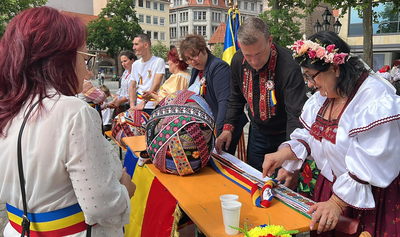 "S-au strâns foarte multe organizaţii din foarte multe ţări, din Noua Zeelandă până în Republica Moldova, şi s-au adunat peste 1.000 de persoane, pentru că sunt asociaţii, sunt şezători româneşti din toate ţările şi din România, unde au sute de persoane sau zeci de persoane în cadrul lor şi au ţesut cât a putut fiecare. De la un metru în sus. Am avut asociaţie care a trimis şi 40 de metri. S-au atins două recorduri. Este cel mai lung brâu românesc confecţionat de românii din pretutindeni, din toată lumea, dar şi cel mai greu, pentru că acesta a fost cântărit", a declarat, luni, pentru AGERPRES, coordonatoarea Asociaţiei "Dacia e.V. Germania" şi a Centrului Cultural Româno-Moldo-German din Nürnberg, Ionela van Rees-Zota.