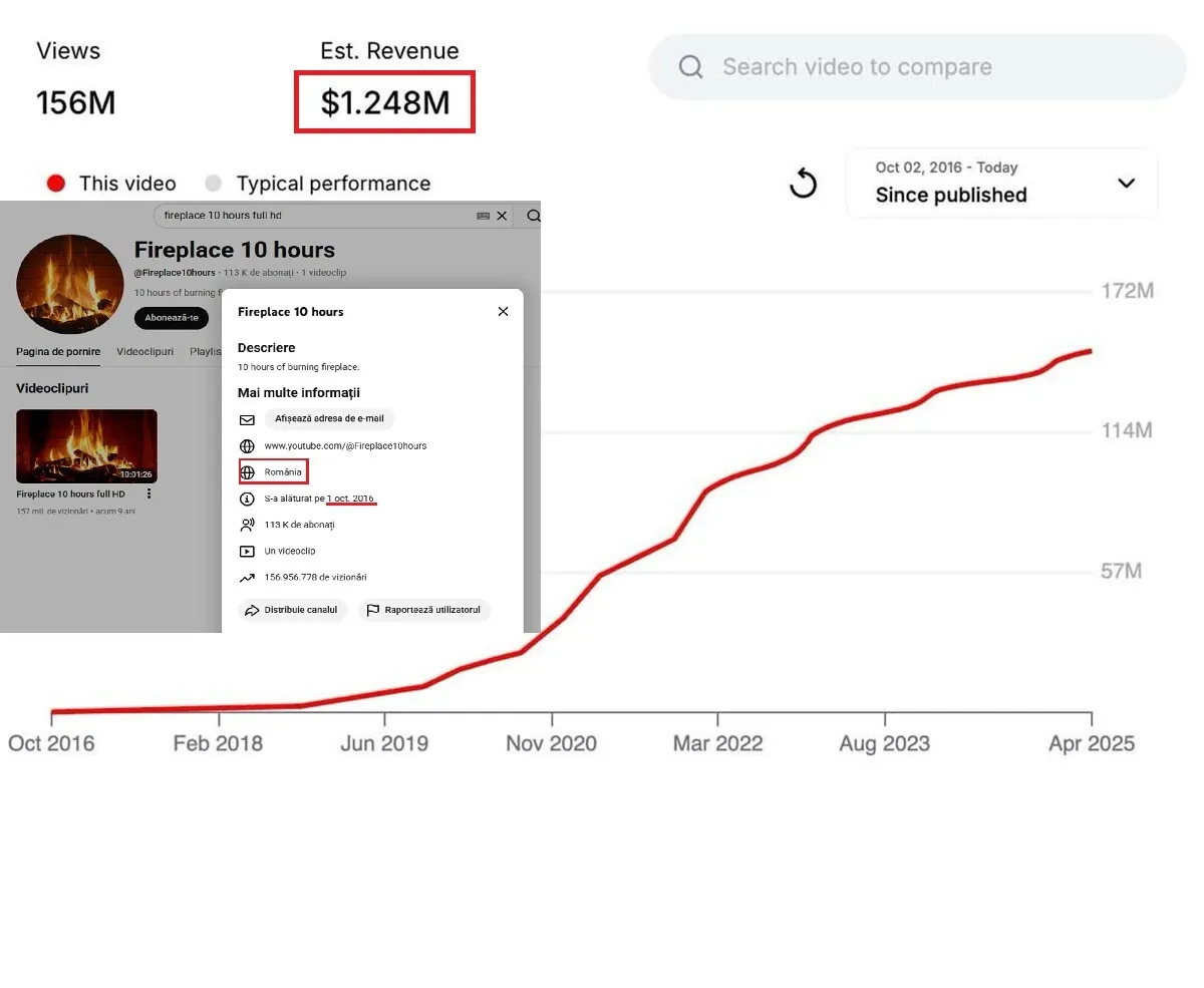 Canalul care a publicat clipul se numește „Fireplace 10 hours” și este înregistrat în România. Informațiile publice arată că autorul și-a creat canalul la finalul lunii septembrie 2016 și, la scurt timp, a încărcat singurul videoclip existent. Atât. Nu a mai urmat niciun alt conținut.