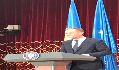 Preşedintele Consiliului European Donald Tusk a rostit joi, la ceremonia de la Ateneu, pentru a marca preluarea oficială a preşedinţiei Consiliului UE de către România, un discurs în limba română din care nu au lipsit referirile la Mircea Eliade, la muzica lui George Enescu, la Nichita Stănescu, la Tristan Tzara, la Eugen Ionescu şi Andrei Pleşu, la performanţele sportivilor români, dar şi la prima maşină a familiei, o Dacia."Sunt convins că, în aceste şase luni, veţi interpreta cu energie şi înţelepciune o adevărată Rapsodie română. (...) România are puterea de a fascina şi de a încânta", a spus el, recomandându-le românilor să apere statul de drept şi Constituţia "cu aceeaşi hotărâre cu care Helmuth Duckadam a apărat acele patru penalty-uri la rând", la Sevilla.