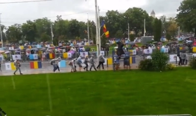 Zeci de credincioși, care s-au strâns încă de sâmbătă de la prânz în centrului Iașiului, în așteptarea Papei Francisc, înfruntă o ploaie torențială cu grindină. Ei s-au adăpostit sub umbrele, și-au îmbrăcat pelerinele ori s-au refugiat sub copaci, anunță Mediafax.