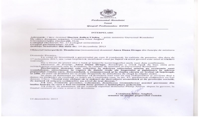 Citez din interpelarea înregistrată pe 8 decembrie 2015: